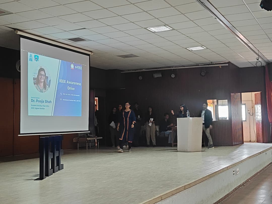 The event's highlight was the esteemed presence of Dr. Pooja Shah from the IEEE Gujarat Section, who delivered an inspiring keynote address. Her insights, coupled with the informative sessions, left attendees inspired and motivated to actively engage with IEEE activities and initiatives. The event successfully achieved its goals of increasing awareness about IEEE's pivotal role in the technology sector, providing exposure to cutting-edge advancements, and creating networking opportunities.