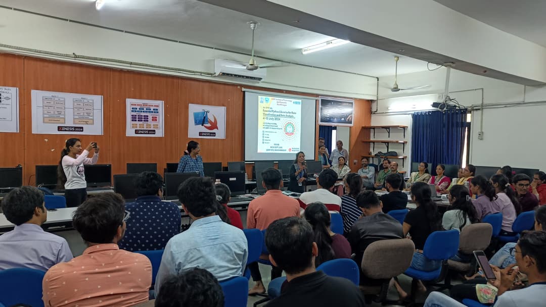 The first day started with Saraswati Vandana, followed by introduction to the speakers. Essential Python Libraries for Data Visualization & Data Analysis were introduced, along with practical sessions to reinforce learning.